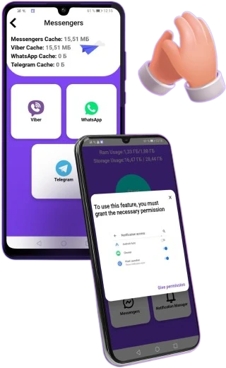 Reserve your RAM for ultra-important data. Optimize the space on your phone to store valuable information. Identification and removal of inactive applications and redundant files. Let your phone run fast down a